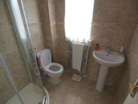 Fitted with a three piece suite comprising pedestal wash hand basin, panelled bath with shower over and shower screen, low level WC. Heated towel rail. Upvc double glazed window.