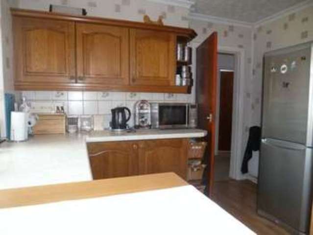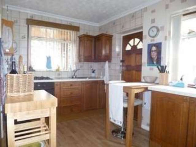 With a range of wall cupboards and base units with a medium timber colour effect finish together with integrated gas hob and under oven. Double glazed windows to the side and rear with fitted vertical blinds. Tiled walls. Larder/store containing the gas central heating boiler. Airing cupboard with hot water cylinder.