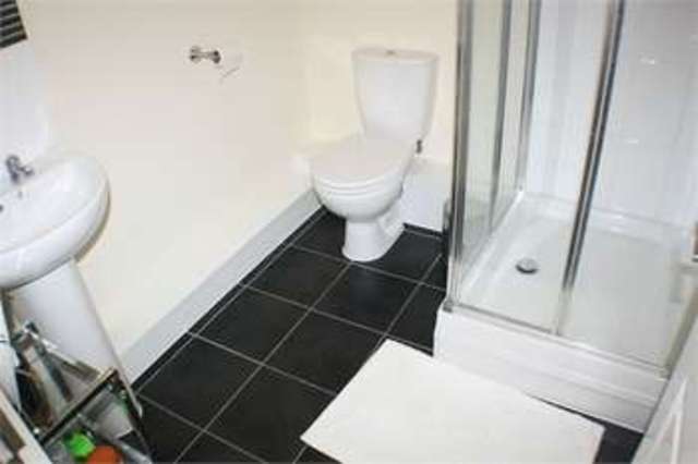 Tiled floor, part tiled walls, low level WC, hand wash pedestal basin, shower with mixer tap and shower attachment, extractor fan, shaver point.