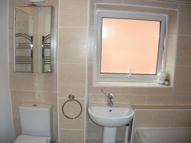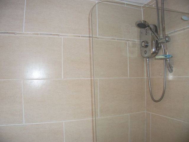 The fully tiled bathroom has been re-fitted and benefits from having a shower as well as a bath.