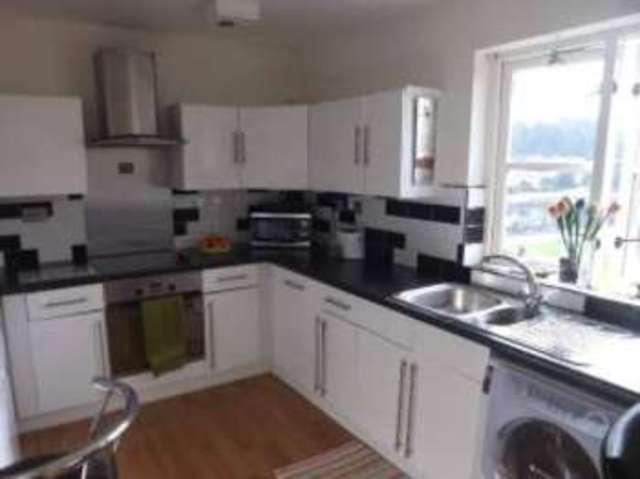| Kitchen | 10' x 9'1\" (3.05m x 2.77m). Fitted kitchen having wall and base units, roll edged work surfaces, sink/drainer unit, hob with extractor fan over, built-in oven, plumbing for washing machine and dishwasher, space for fridge/freezer, breakfast bar, tiled walls, front elevation double glazed window overlooking the river, extractor fan and telephone entry system.