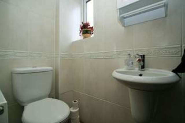 UPVC opaque window to side. Low level WC. Wall mounted wash hand-basin. Ceramic floor tiles. Radiator. Ceramic wall tiles. Cloakroom hooks and boot store. LED low energy down lighting.