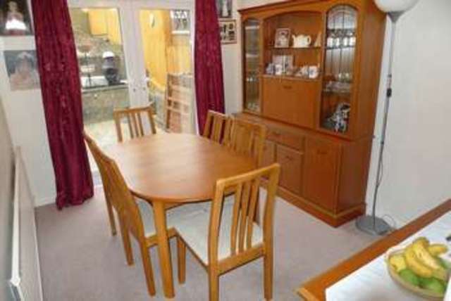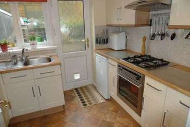 Fitted with a matching range of base and wall units with preparation surfaceover, tiled splash back and stainless steel sink and drainer. Integrated gasoven and hob with extractor over, space for under counter fridge and washingmachine with space for freezer. UPVC double glazed window and door to rear.