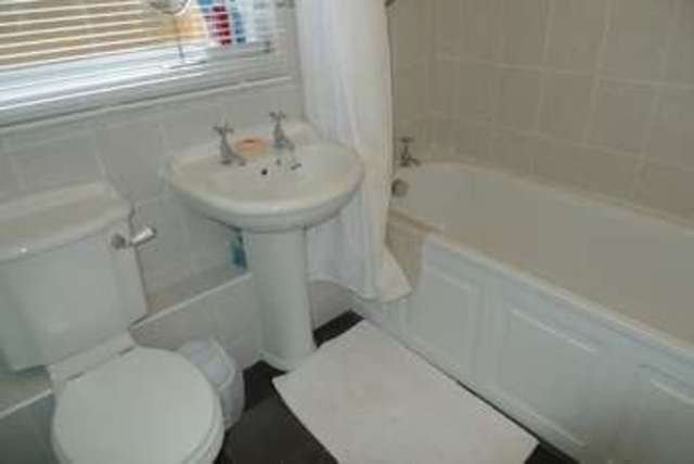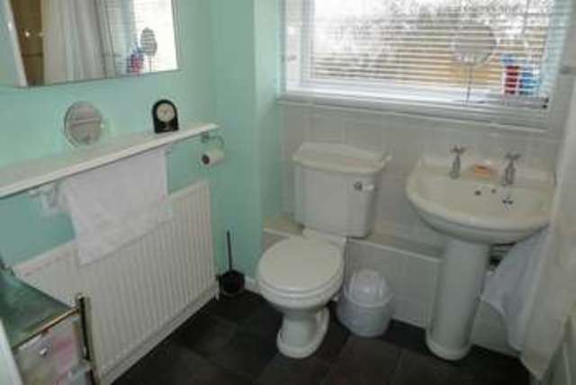 Vinyl flooring, 3 piece suite consisting of low level w/c, wash hand basin andbath with electric shower over and tiled surround, radiator. UPVC double glazedwindow to rear.