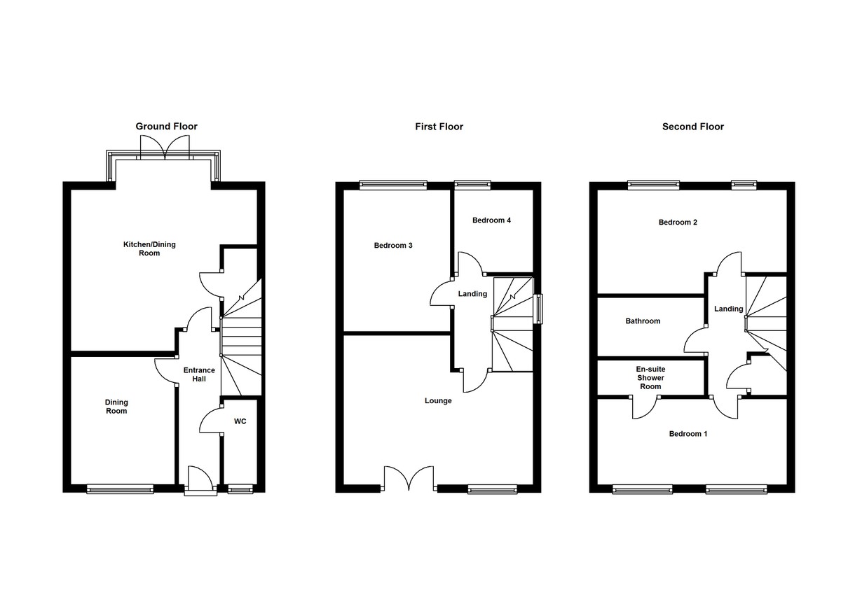 The contemporary accommodation briefly comprises of; entrance hall, ground floor cloak/w.c., contemporary style kitchen with dining/sitting area off and a formal dining room. To the first floor landing there are two bedrooms and a spacious L shaped lounge, stairs to the second floor leading to two further bedrooms and house bathroom, in addition to the en suite off the master bedroom.