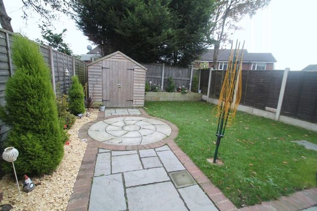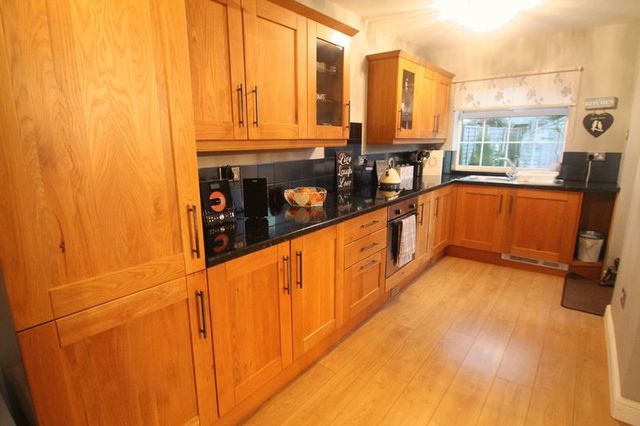 Accessed via double doors from lounge with leading access to rear garden via double glazed door to side. The kitchen comprises of double glazed bow window to front, double glazed window to front, central heated radiator, stainless steel sink and drainer, modern fitted wall and base units, roll edge work surfaces, tiled splash prone areas, intregated fridge freezer, electric oven and hob and television point.
