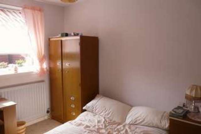 A double bedroom with double glazed window to the rear. Fitted roller blind. Pendant light. Recessed wardrobe with hanging rail and shelf. Single panel radiator. Painted skirting. Fitted carpet.