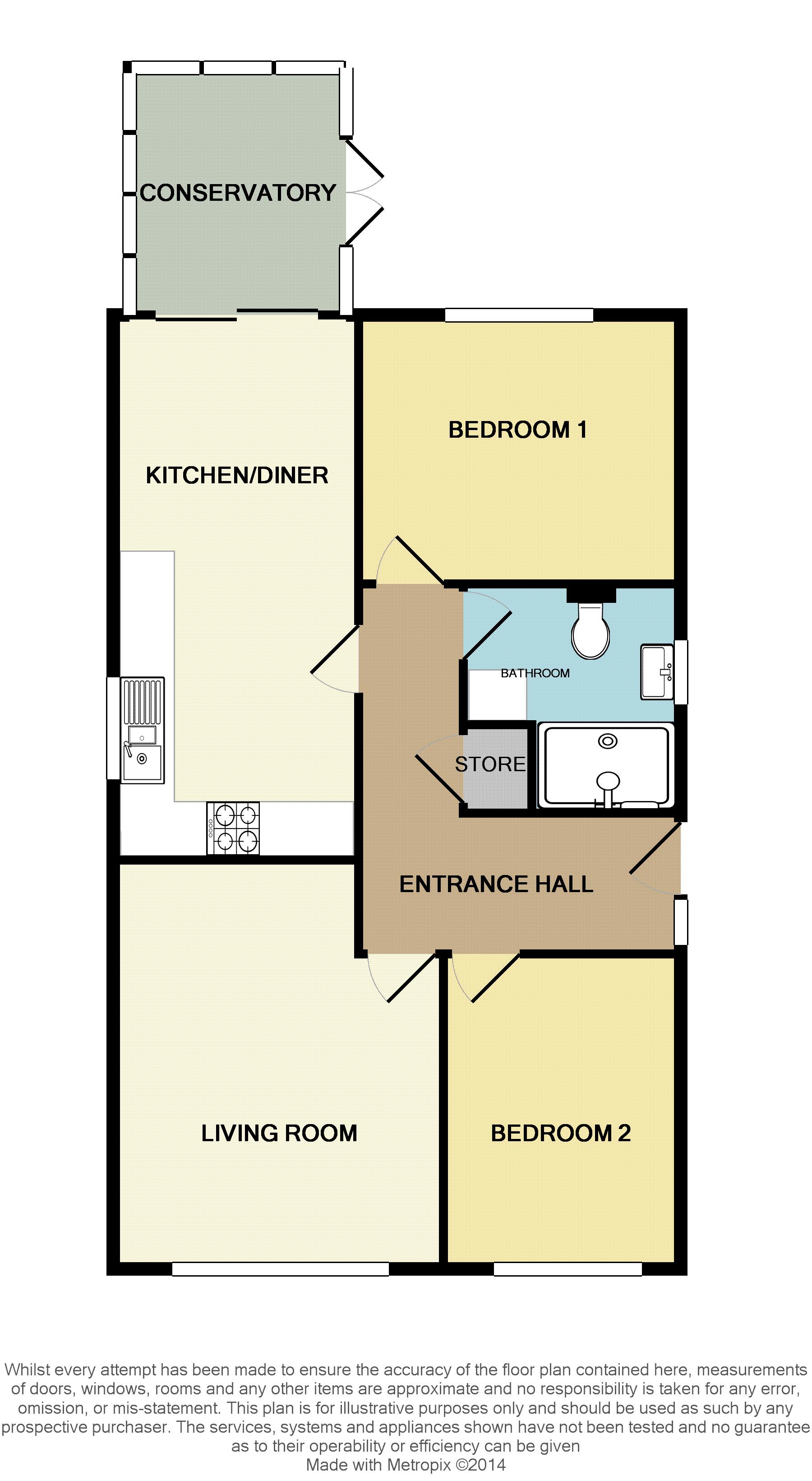 Accommodation briefly comprises: entrance hall, open plan kitchen / dining room, conservatory, living room, 2 double bedrooms, bathroom. Outside; driveway, detached garage, gardens front and rear.