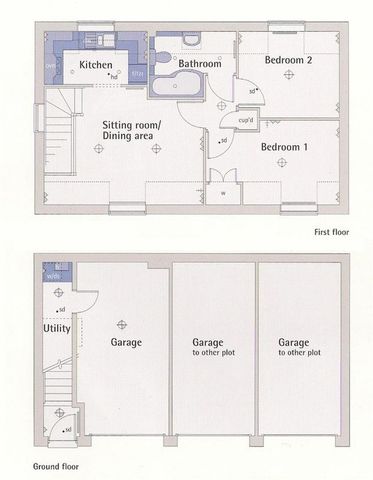 Single garage with up and over door, light and power, under stairs storage cupboard, water stop tap, wall mounted 'Potterton Suprima' gas boiler.