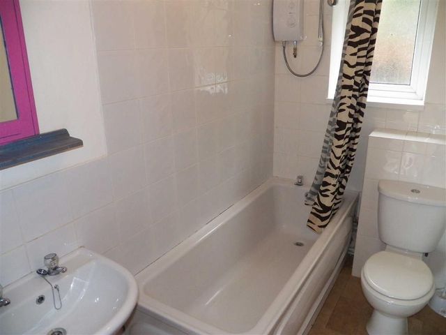 7'11 x 4'8 (2.41m x 1.42m)Fitted with a three piece suite comprising low level WC, pedestal wash hand basin, panel bath with shower over, tiled splashback, single panel radiator, double glazed frosted window to rear.