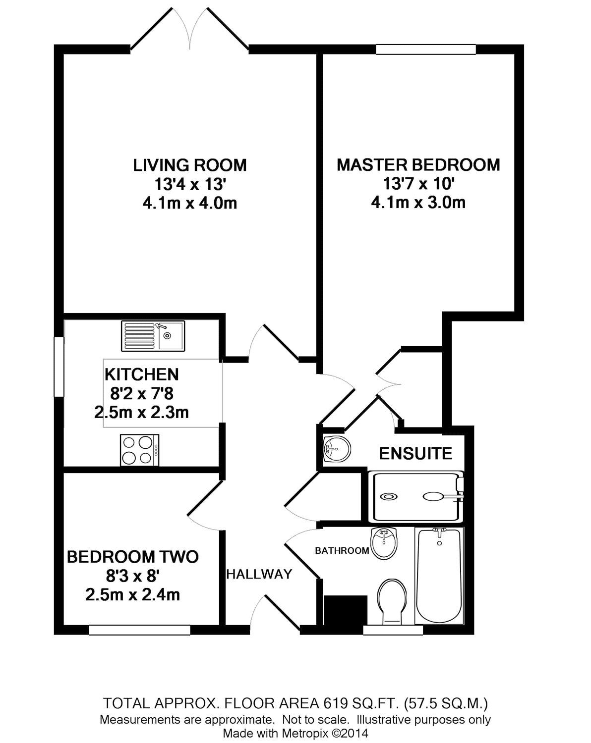 Master Bedroom 13'7\" x 10' (4.14m x 3.05m).