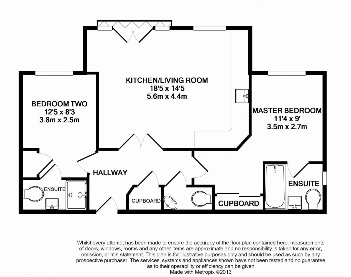 Master Bedroom 11'4\" x 9' (3.45m x 2.74m).