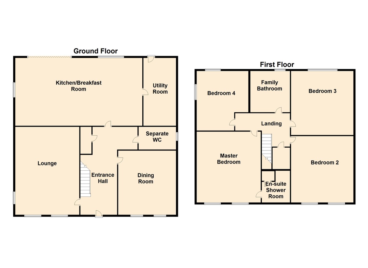 This stunning family home will briefly comprises entrance hall, downstairs w.c., spacious lounge, separate dining room, superb modern fitted breakfast kitchen with utility room off. A staircase leads to the first floor landing, master bedroom with en suite shower room/w.c., three further well proportioned bedrooms and the stunning house bathroom/w.c. Outside there are newly turfed lawned gardens to the front and rear with a tarmacadam driveway at the side providing off road parking leading to the semi detached brick built garage with feature electric operated door.